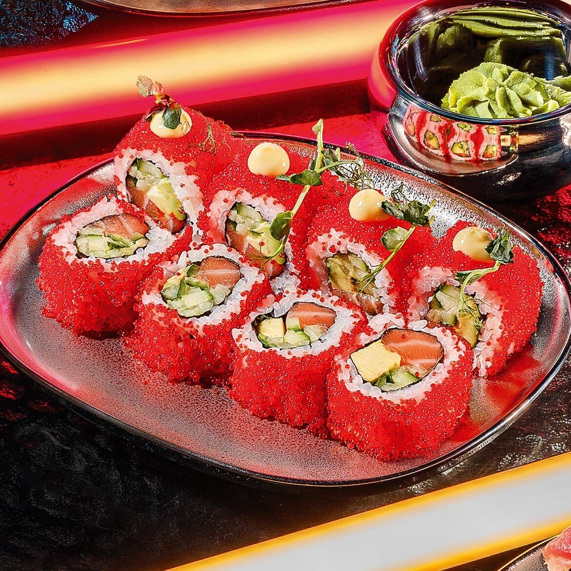 Ingrediente: Orez, Nori, Tobiko, Somon, Castraveti, Avocado, Maioneza japoneza (220 g)