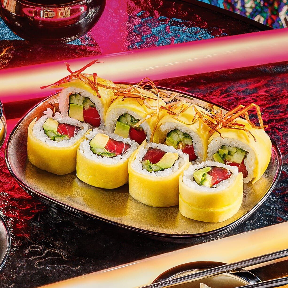 Ingrediente: Orez, Nori, Ton, Castraveti, Avocado, Mango (200 g)
