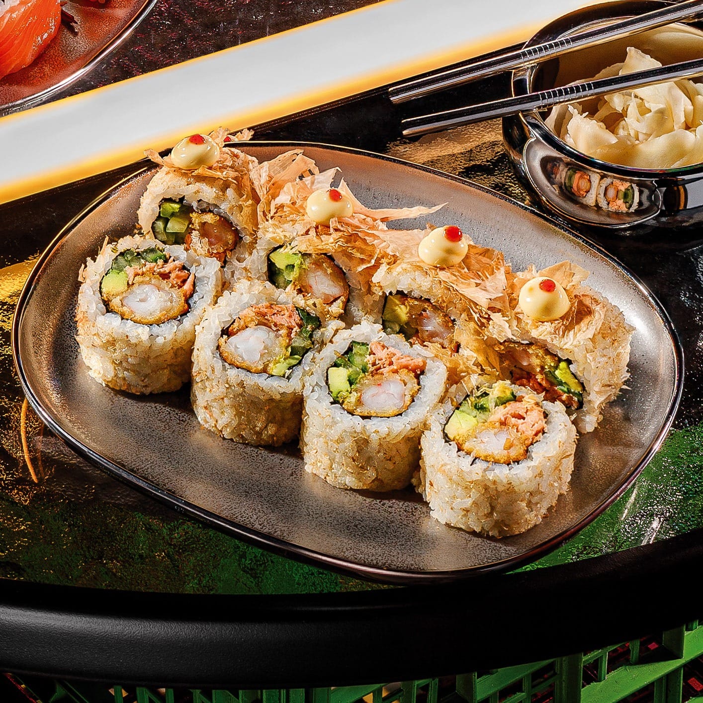 Ingrediente: Orez, Nori, Somon copt, Castraveti, Creveti Tempura, Aschii de ton, Maioneza Japoneza, Kimchi (240 g)