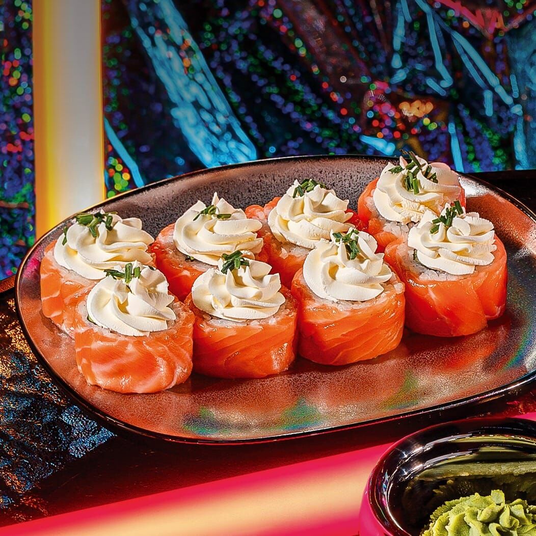 Ingrediente: Orez, Nori, Somon, Crema de branza, Castraveti, Avocado (300 g)