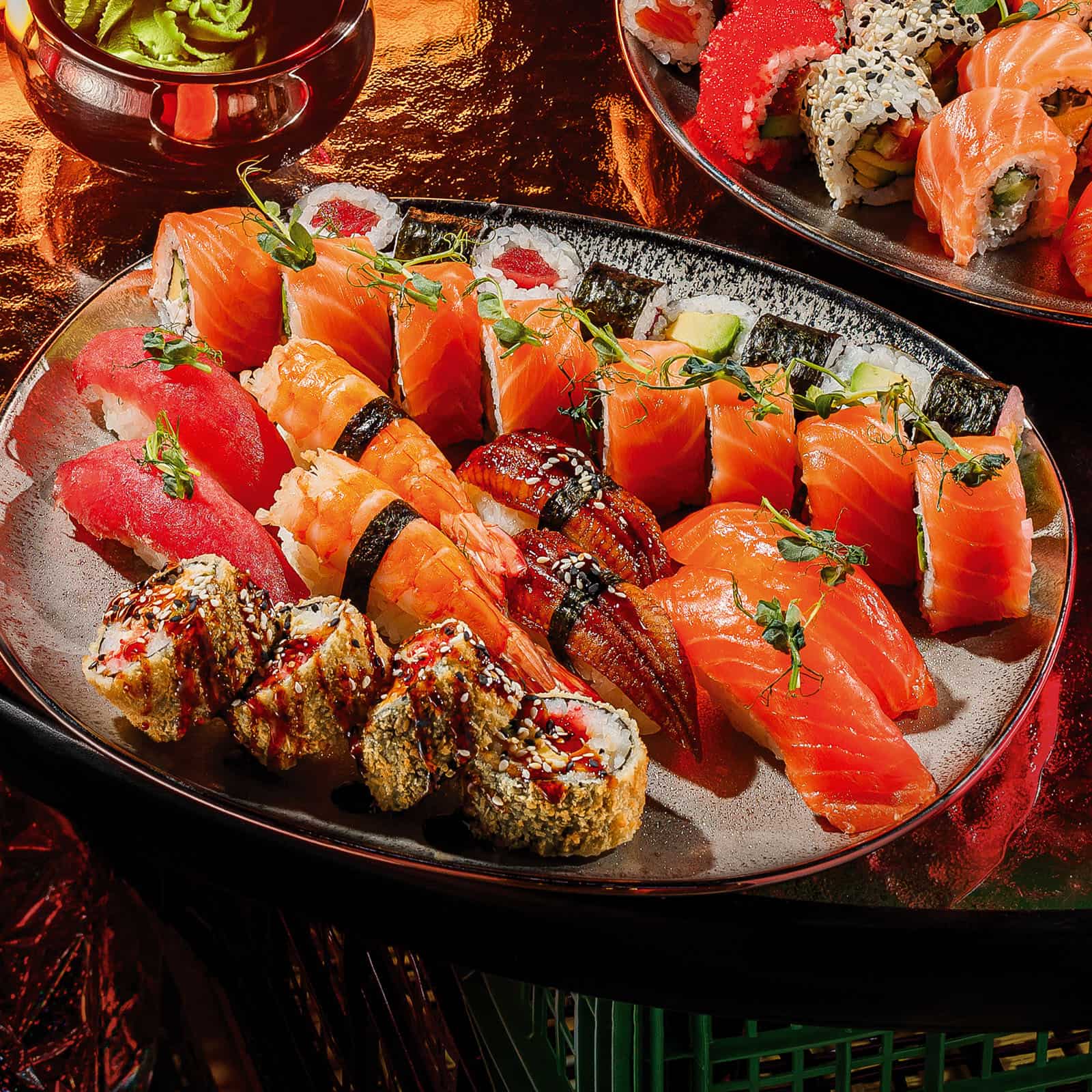 Philadelphia Classic, Nigiri Tuna, Nigiri Salmon, Nigiri Shrimp, Nigiri Tipar, Maki Tuna, Maki Avocado, Salmon Tempura – 890g (28 buc.)